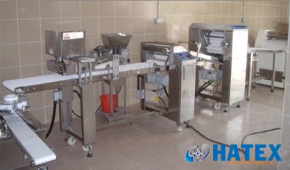 3. Máy cán thành hình vỏ bánh ( gồm bánh cán và băng tải)